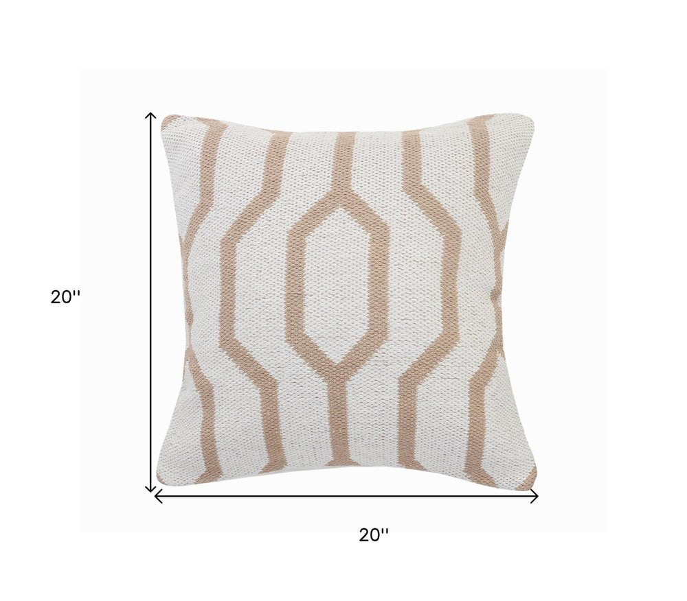 Enhance your living space with this 20-inch black and white cotton geometric throw pillow, ideal for sofas, chairs, or beds. Crafted from high-grade, durable 100% cotton, the pillow features a striking geometric pattern that adds modern visual interest and texture. Its polyfill filling offers superior softness while maintaining shape, providing both comfort and support for lounging or cuddling.