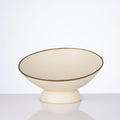 This tilted ceramic bowl combines clean lines and organic form for effortless elegance. Its asymmetrical silhouette, smooth finish, and rich brown rim adds warmth and depth. A perfect decorative statement or functional piece, it embodies timeless minimalism and elegance.