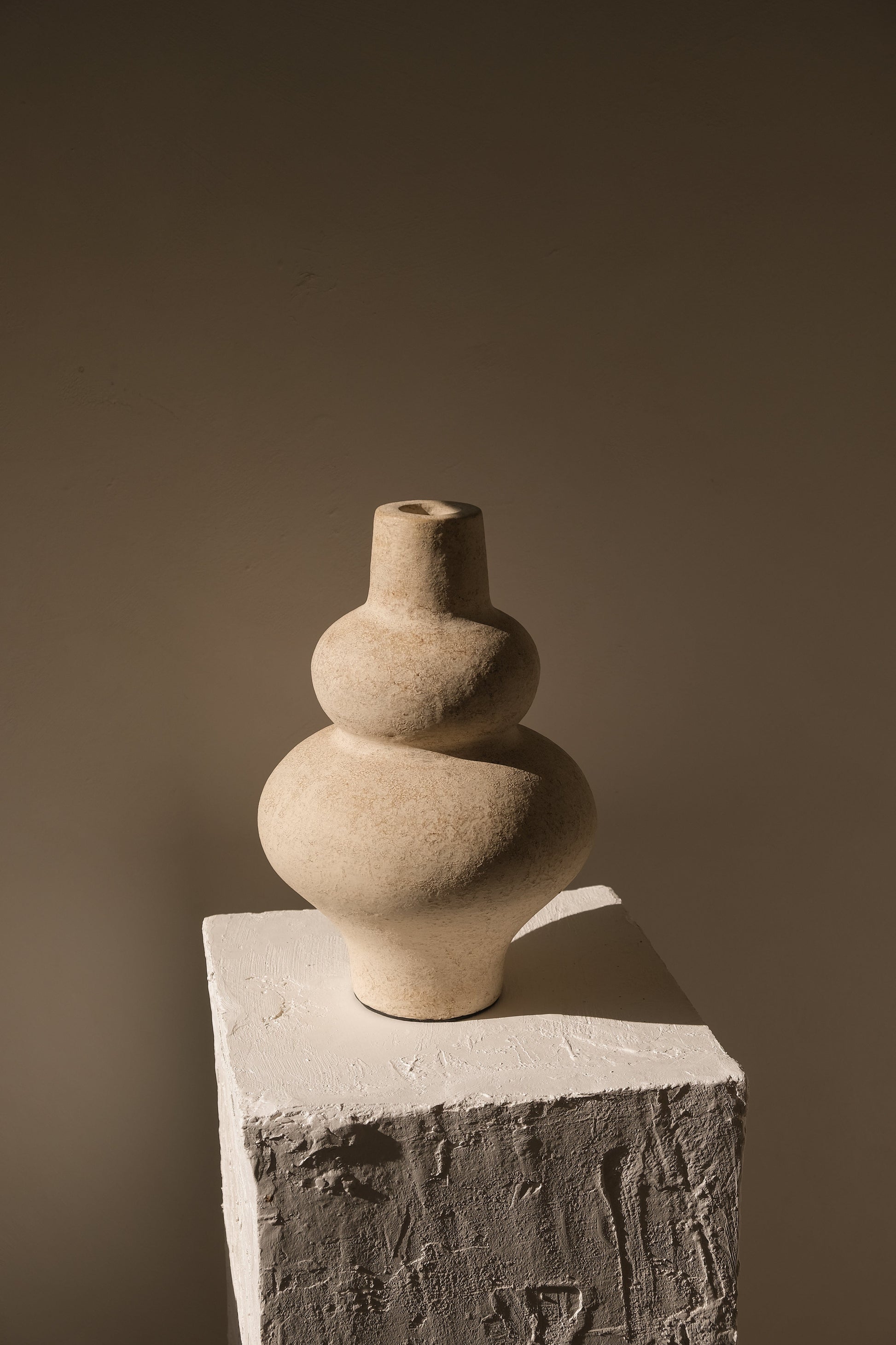 This vessel can be used as a vase for dry stems or as a standalone decorative piece on shelves or tabletops.